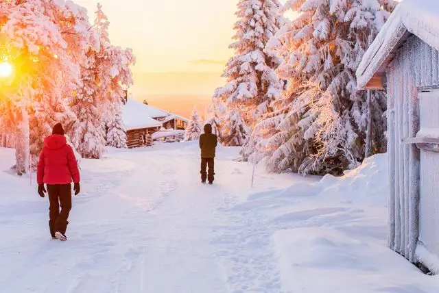 בקתות עץ מבודדות באזור לוי (Levi) מציעות פריימים אינטימיים יותר. שלג על הגג ועשן מארובה יוצרים אווירה. שילוב אורות צהובים עם שלג כחול עמוק מייצר קונטרסט צבעוני חזק. כדאי להגיע בשעת דמדומים. זהו רגע מושלם לצילום.